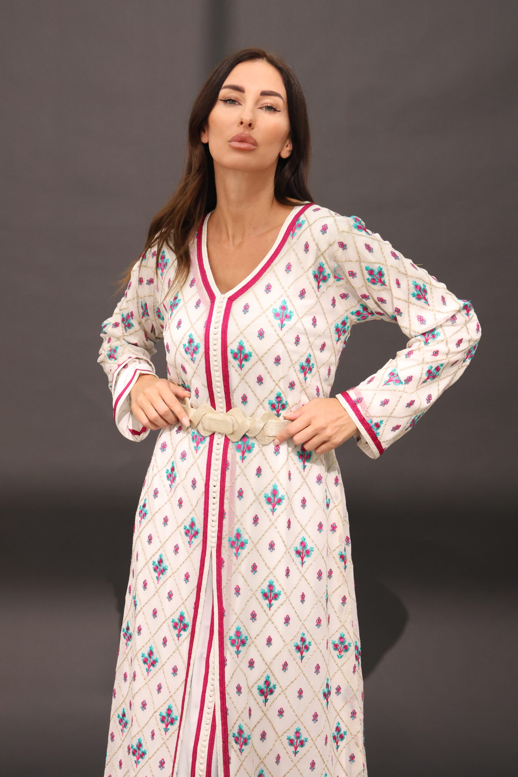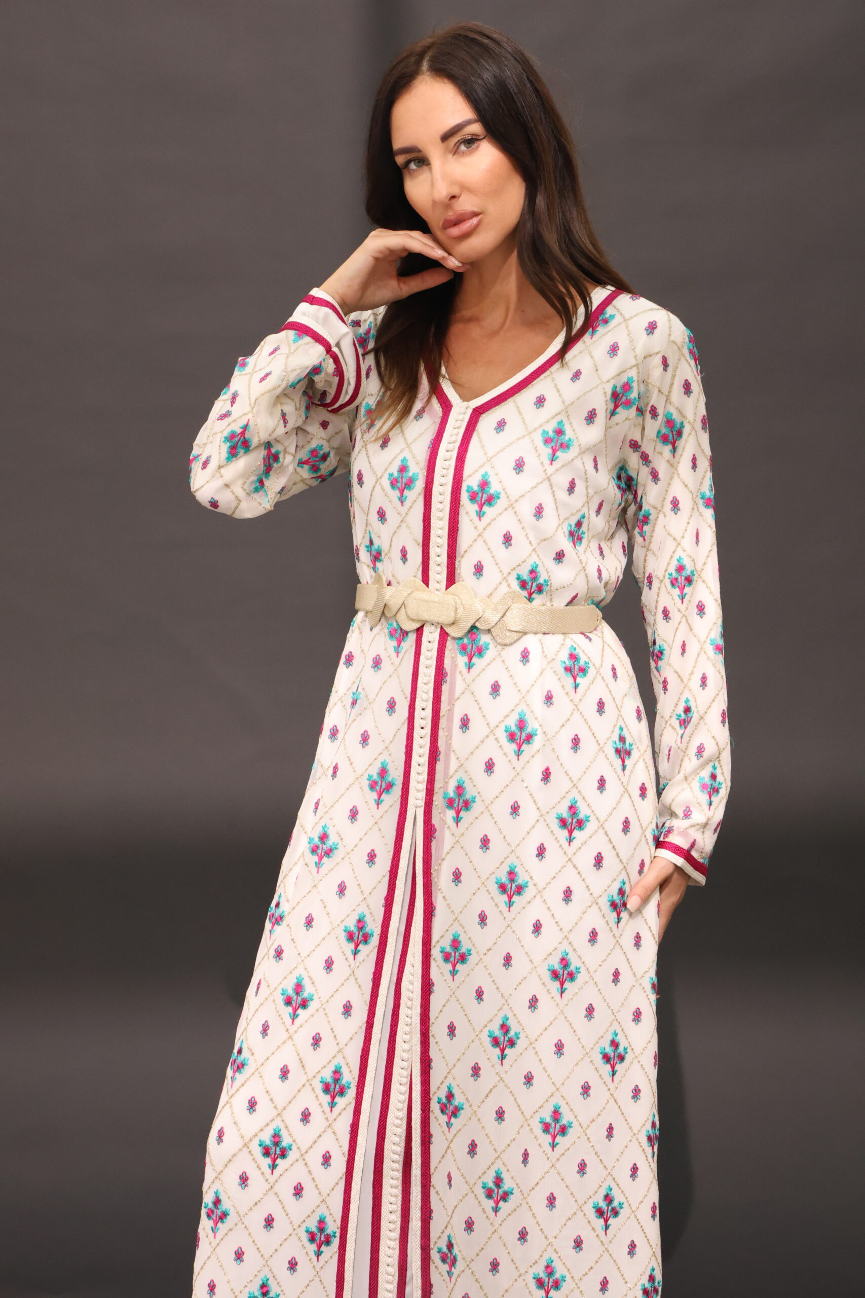 قفطان من قطعتين مشغول يدويا بالصنعة